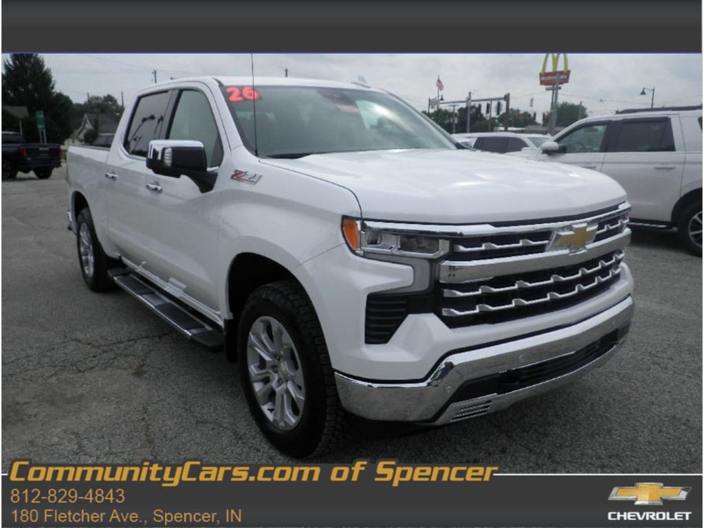 2026 Chevrolet Silverado 1500 LTZ 4WD V8 5.3L Gasoline, Spencer IN. This premium full-size pickup blends commanding performance and refined comfort at the best price in the area. Powered by a responsive 5.3L V8, the Chevrolet Silverado LTZ delivers robust towing capability and smooth highway power, while four-wheel drive ensures confident traction for work or weekend adventures around Spencer, Indiana. Step inside and enjoy leather seats and a thoughtfully appointed cabin that elevates every drive. Steering wheel audio controls put entertainment at your fingertips, and XM Radio provides endless listening options for long hauls. Cold mornings are no problem with convenient remote start, and parking or trailering is made simple with a clear back-up camera. This Chevrolet Silverado LTZ balances capability and convenience with premium features normally found in higher trims comfort-focused interior materials, modern connectivity, and practical technology for daily use. Whether youâre hauling equipment, towing a trailer, or commuting to town, the V8 5.3L powerplant and 4WD system provide reliable performance and confidence in varied conditions. Located in Spencer IN, this 2026 Chevrolet Silverado 1500 LTZ represents exceptional value with the best price locally. Donât miss a chance to drive home a tough, refined pickup that checks every box for power, luxury, and utility. Contact us to schedule a test drive and see why this Chevrolet Silverado stands out.