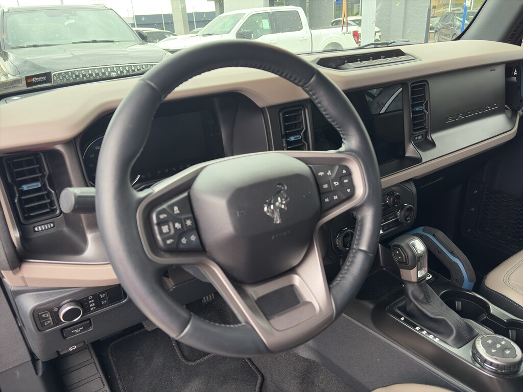 Apple CarPlay: Seamless smartphone integration for this 1/2 ton suv - stay connected and entertained on the go! Start this 2023 Ford Bronco Advanced from inside with remote start. This Ford Bronco has automated speed control that adjusts to maintain a safe following distance, enhancing highway driving convenience. The installed navigation system will keep you on the right path. Protect it from unwanted accidents with a cutting edge backup camera system. The rear parking assist technology on this 1/2 ton suv will put you at ease when reversing. The system alerts you as you get closer to an obstruction. The vehicle is equipped with the latest generation of XM/Sirius Radio. This vehicle offers Android Auto for seamless smartphone integration. The leather seats in this model are a must for buyers looking for comfort, durability, and style. Keep your hands warm all winter with a heated steering wheel in the vehicle .