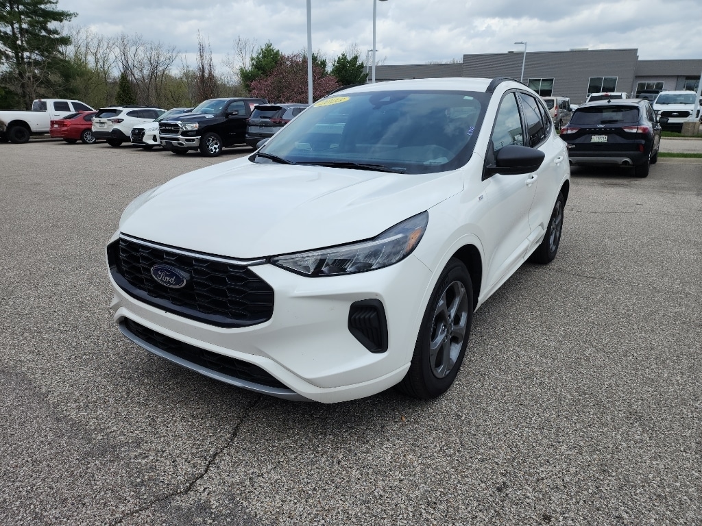 2023 Ford Escape ST-Line AWD â" low mileage, best price in Bloomington, IN. This stylish compact SUV pairs sporty ST-Line design with efficient performance from a turbocharged 3-cylinder 1.5L gasoline engine and intelligent all-wheel drive, delivering confident handling and impressive fuel economy. With only 9,310 miles, this Ford Escape offers exceptional value and long-term dependability for drivers seeking like-new condition without new-car pricing. Inside, enjoy a tech-forward cabin featuring Android Auto and Hands-Free Bluetooth for seamless smartphone integration and safer, connected commutes. The Back-Up Camera enhances visibility when parking and maneuvering, while Adaptive Cruise Control adds convenience and reduces fatigue on highway drives. Cold-weather comfort comes from the Heated Steering Wheel, keeping your hands warm on chilly mornings. Exterior ST-Line cues give this Ford Escape a sportier stance and premium presence on Bloomington roads, while AWD provides traction for seasonal changes. This vehicle is priced competitively-presented as the best price for similar low-mileage examples in the area-making it an ideal choice for budget-conscious buyers who value quality and features. Well-maintained and ready for immediate delivery in Bloomington, IN, this 2023 Ford Escape ST-Line AWD combines efficiency, technology, and comfort. Contact us to schedule a test drive and experience this low-mileage Ford Escape for yourself.