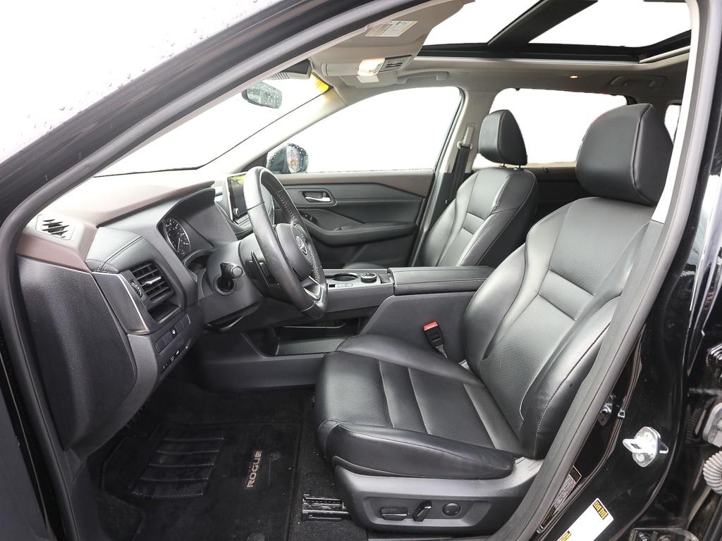 The leather seats in this 2023 Nissan Rogue are a must for buyers looking for comfort, durability, and style. This model keeps you comfortable with Auto Climate. Start the Nissan Rogue from inside with remote start. The rear parking assist technology on it will put you at ease when reversing. The system alerts you as you get closer to an obstruction. Bluetooth technology is built into this small suv, keeping your hands on the steering wheel and your focus on the road. Keep your hands warm all winter with a heated steering wheel in this 2023 Nissan Rogue . See what's behind you with the back up camera on it. This vehicle comes equipped with Android Auto for seamless smartphone integration on the road. Apple CarPlay: Seamless smartphone integration for this vehicle - stay connected and entertained on the go! The vehicle has an elegant black exterior finish. Load groceries and much more with ease into this 2023 Nissan Rogue thanks to the power liftgate.